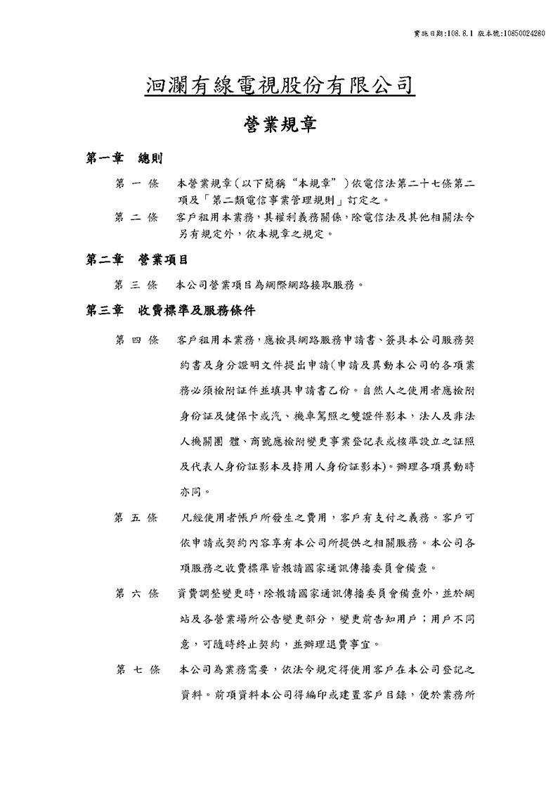 洄瀾有線電視秉持合法合規的經營理念,為用戶們提供用戶安心且可靠的服務, 我們公開分享有線電視及寬頻服務相關的法律條文與規範,讓您瞭解我們服務的依據與權益保障。